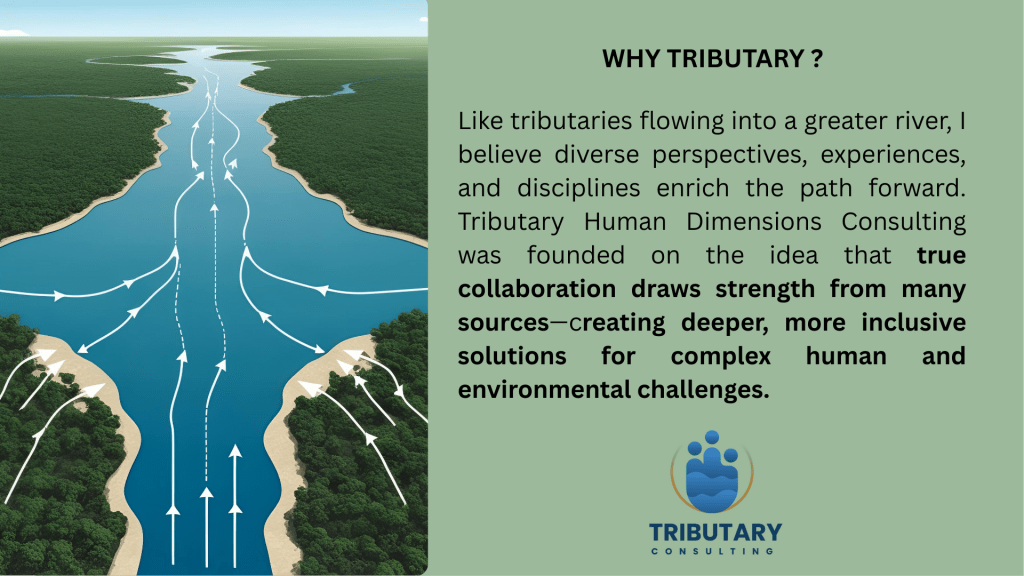 I launched Tributary Human Dimensions Consulting in 2024 after I saw a need among my partners and collaborators for tailored human dimensions support.